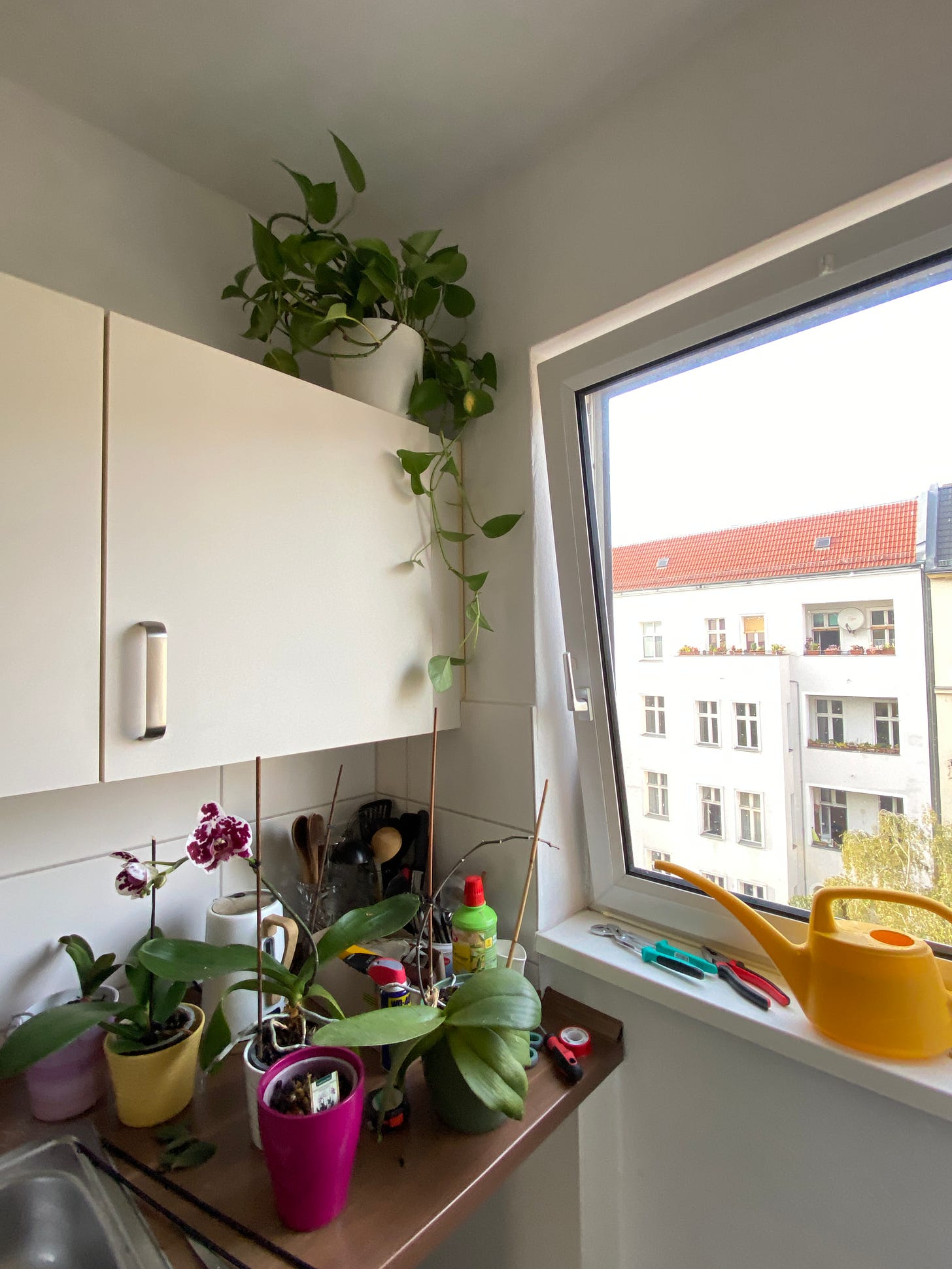 On today’s visit to The Shell, despite not being able to execute much, I decided to beautify the space by finally taking the plants out of their boxes and giving them homes, even for just a while until they may need to be moved again. Poor, heroic plants that have been living in boxes for nearly two months. We lost an orchid. A long-standing one that has been with me for nearly eight years. Its plump leaves completely fell out when I lifted it from the box. Perhaps there will be some regenerative power left in the roots, and it will make a comeback in the right conditions. Orchids have this reputation for being finicky to care for, but I have seen mine thrive with the lightest of care in the right conditions. Another lesson for ourselves. Find the conditions you need for your particular brand of exotic plant to thrive, and it will not need you to fret over it to blossom. It will just do it because that is what it is made to do. People also mostly need to find the right windowsill with the right light and temperature.