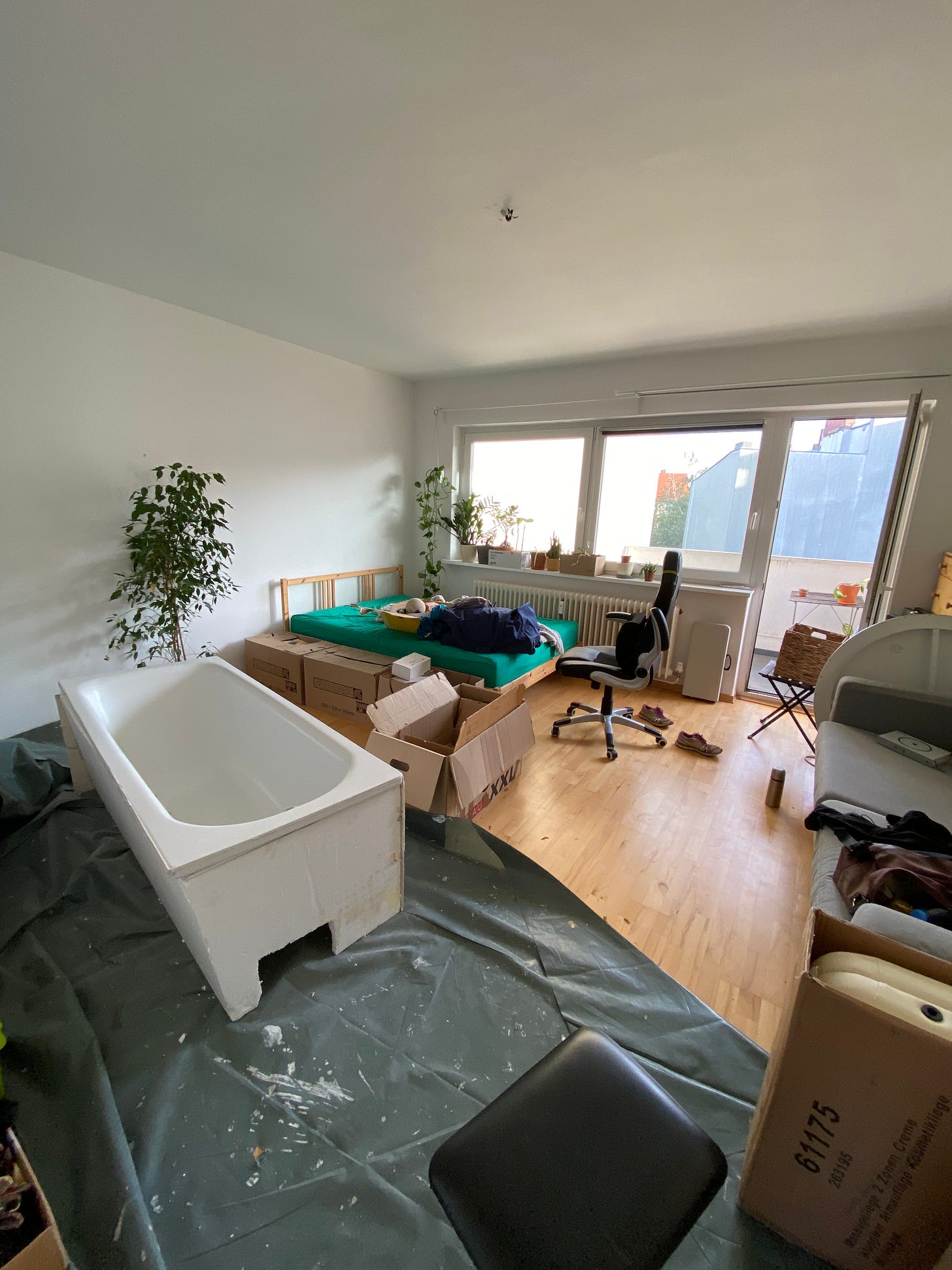 It’s Day 50 of our move and the bathtub is still sitting in the middle of the living room. Every few days Ilja and I come around to our new place, The Shell, and check if anything has changed, opening the door with anticipation each time, to find that it is all exactly how we left it.